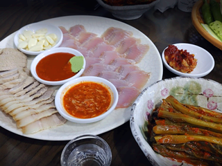 홍어천국 삭힌 홍어맛이 아니라 거부감이 없이 먹을 수 있는 맛집입니다. 묵은지, 파김치에 삼합 돌돌 말아서 먹으면 정말 맛있는 집!
